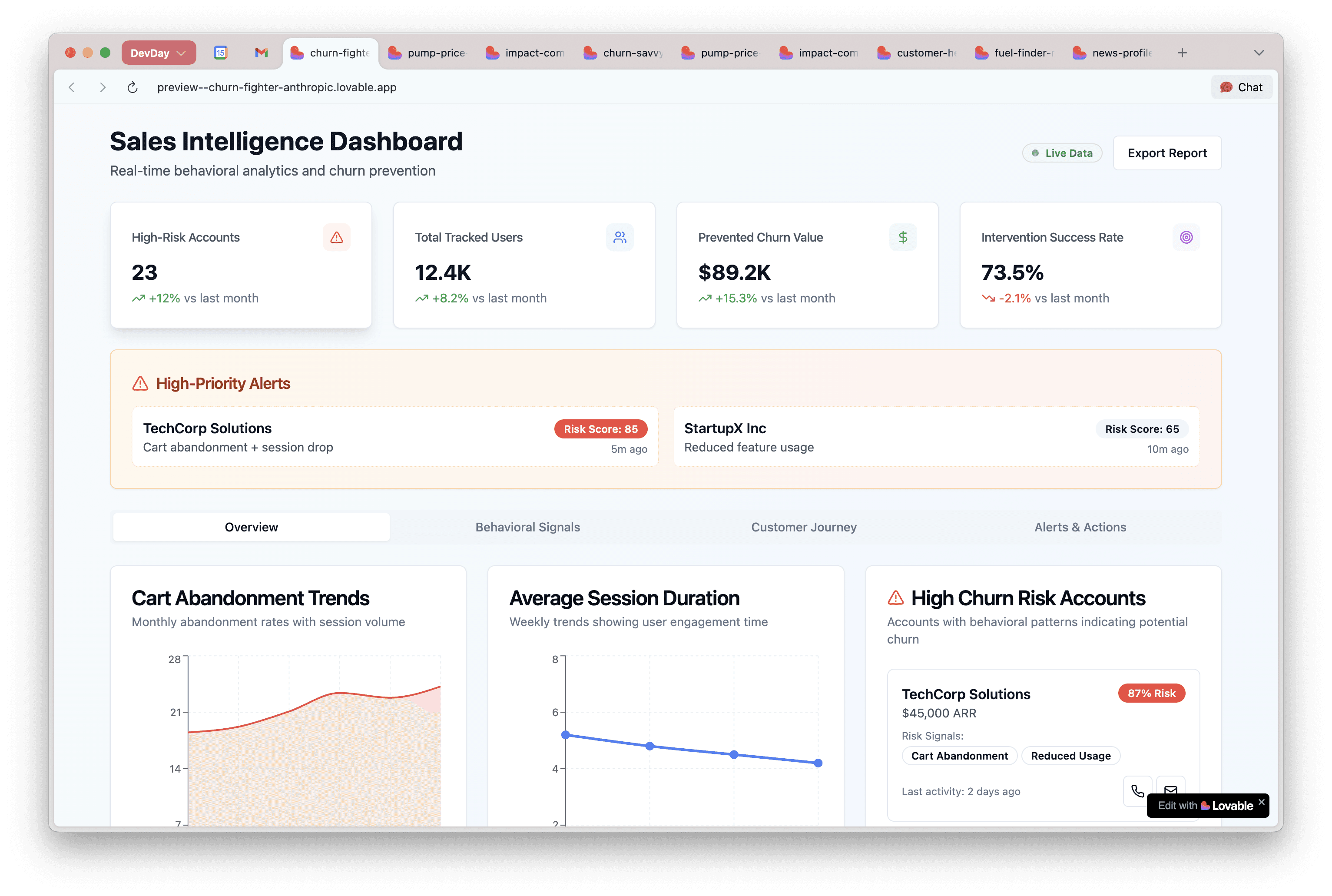 Claude came roaring back like a redemption arc in a sports movie. The dashboard was so comprehensive it looked nearly production-ready: behavioral breakdowns, customer journey mapping, alert systems, AND a monetary business impact score. This wasn't just an app; this was a sales team's fever dream made manifest.